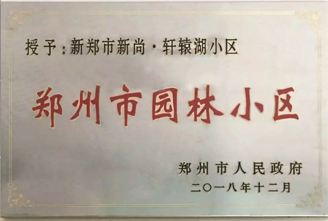 匠心品質(zhì) 載譽而行——新尚·軒轅湖壹號榮獲“鄭州市園林小區(qū)”稱號