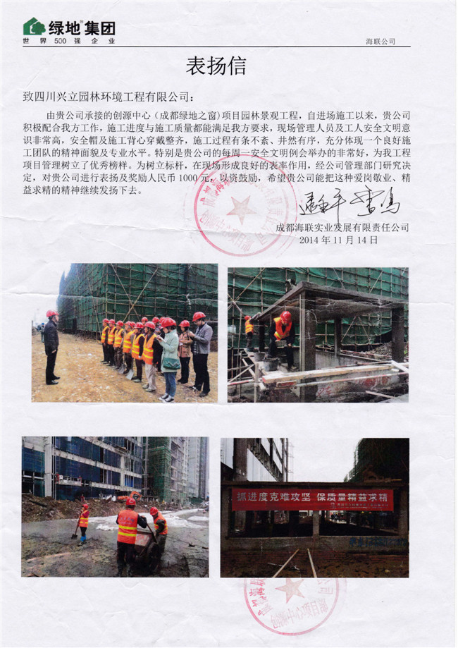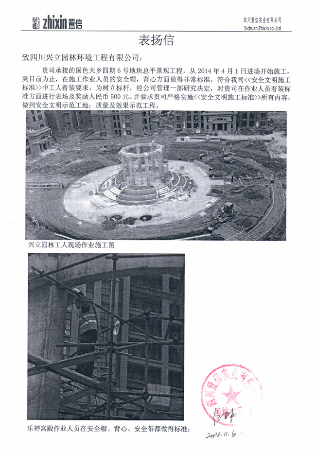 行業(yè)之標(biāo)桿,作業(yè)之典范——記興立園林喜獲各業(yè)主單位的書面嘉獎(jiǎng)