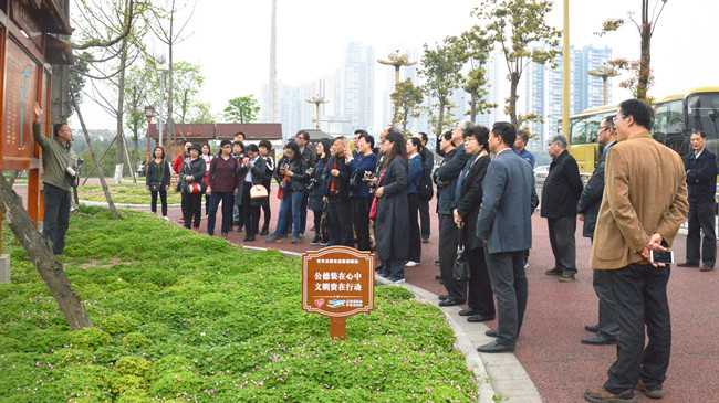 2017年四月二日,中國(guó)風(fēng)景園林學(xué)會(huì)第五屆常務(wù)理事會(huì)召開期間,學(xué)會(huì)常務(wù)副理事長(zhǎng)兼秘書長(zhǎng)原住建部總工程師陳重、副理事長(zhǎng)鄭淑玲、常務(wù)副理事長(zhǎng)兼秘書長(zhǎng)、中國(guó)園林雜志社社長(zhǎng)金荷仙,以及來自北京、天津、重慶、遼寧、長(zhǎng)春、廣州等市住建、園林、公園、城規(guī)等系統(tǒng)的領(lǐng)導(dǎo)、專家近50人,前往四川省眉山市東坡城市濕地公園進(jìn)行了專題考察。